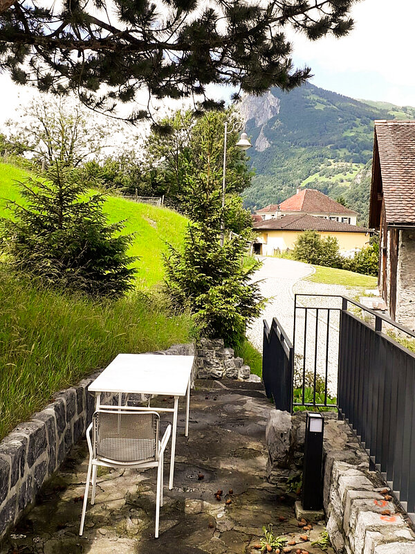 Schreibplatz unter der Föhre © Ursula Wiegele