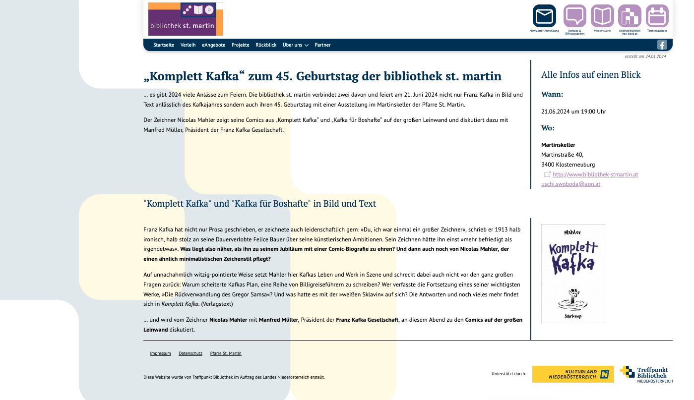 Eine gemeinsame Veranstaltung der Bibliothek St. Martin mit der Österreichischen Franz Kafka Gesellschaft